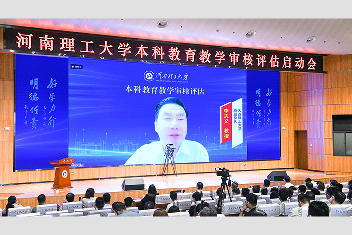 俞冰、河南省高等学校教育教学评估管理服务中心李斯线上出席会议。校领导邹友峰、赵同谦、解伟、翟耀南、赵晓军、程伟、李振华、丁亚红;各职能部门、教学单位负责人,校教学督导组成员和评建办全体工作人员等参加会议。