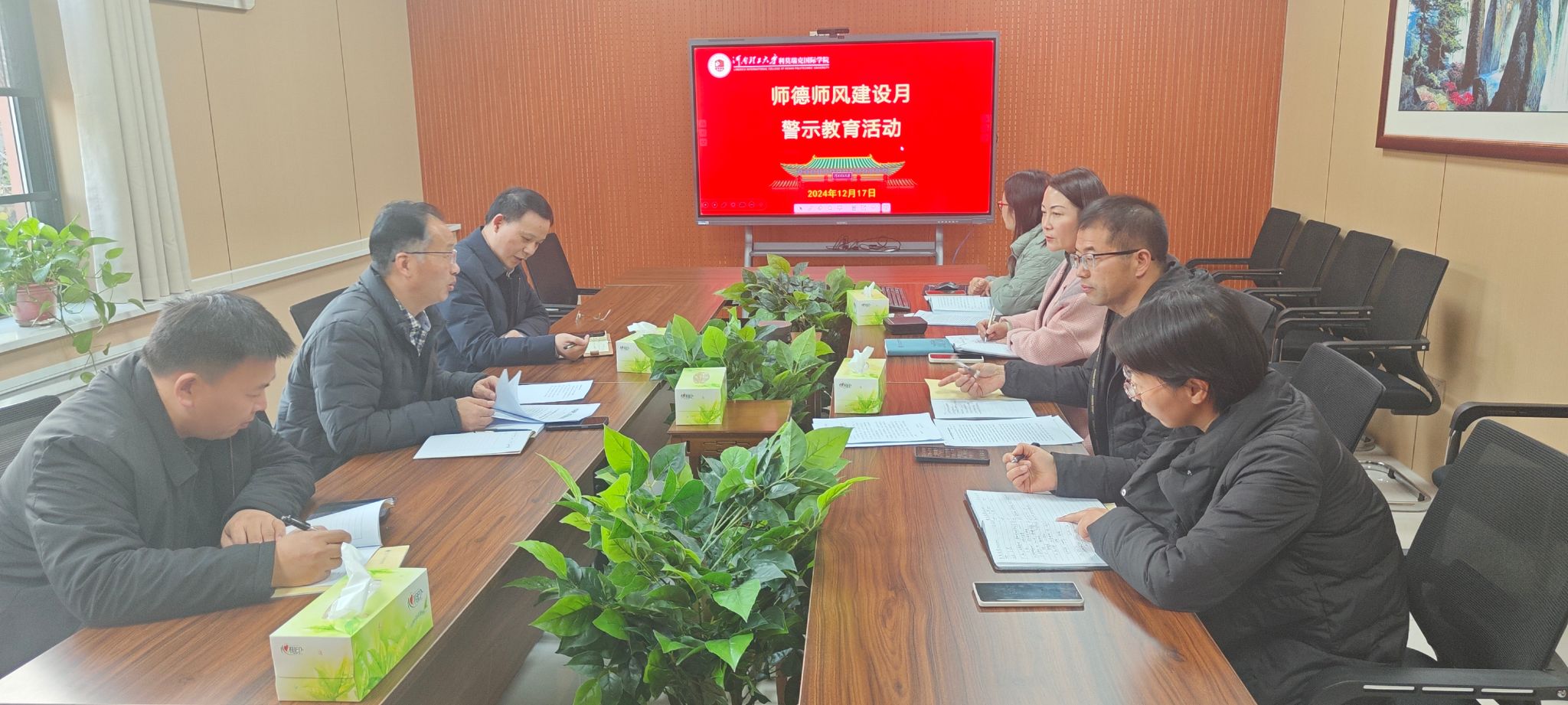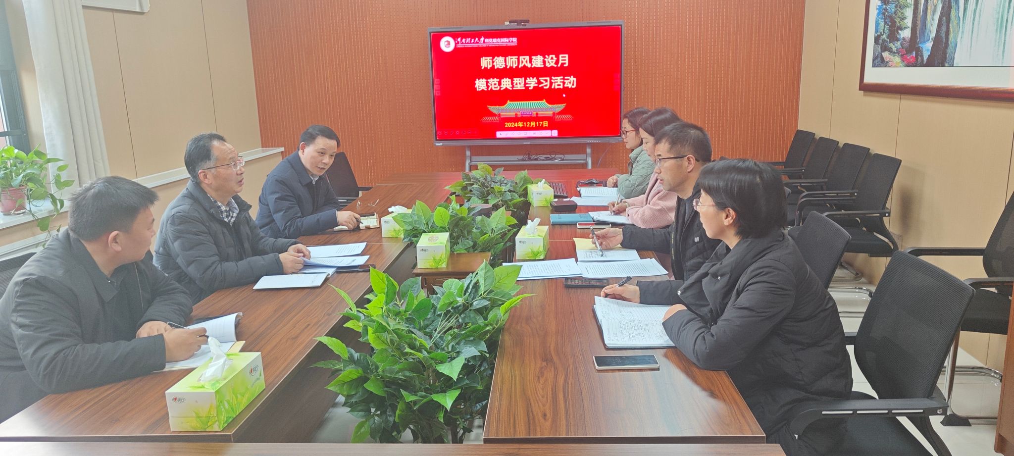 党委书记张长森领学了《中共中央 国务院关于弘扬教育家精神加强新时代高素质专业化教师队伍建设的意见》《新时代高校教师职业行为十项准则》《关于高校教师师德失范行为处理的指导意见》等师德师风建设相关文件,并对违反高校教师职业行为准则的典型案例进行了深入剖析,警示教师们要坚守底线、不越红线。